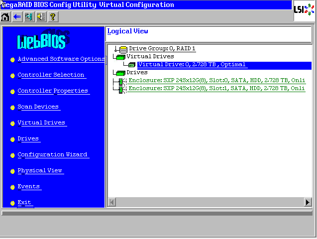如下图所示,当前有一个阵列,选择左侧的“Virtual Drives”