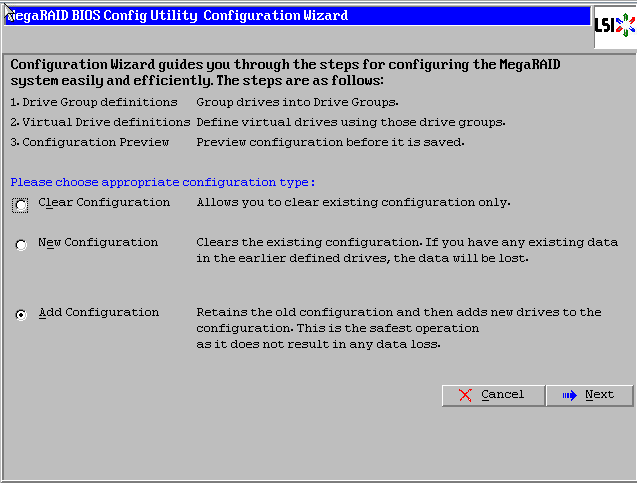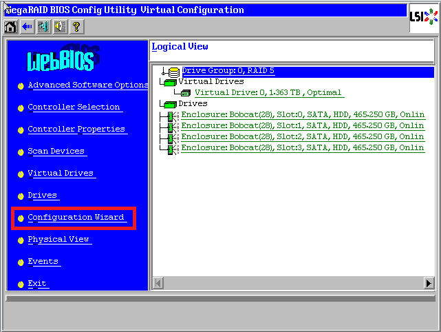 WebBIOS主页点击【Configuration Wizard】,打开配置向导