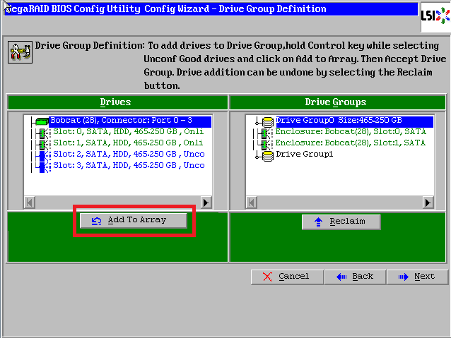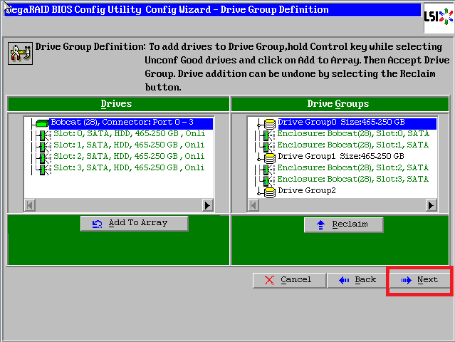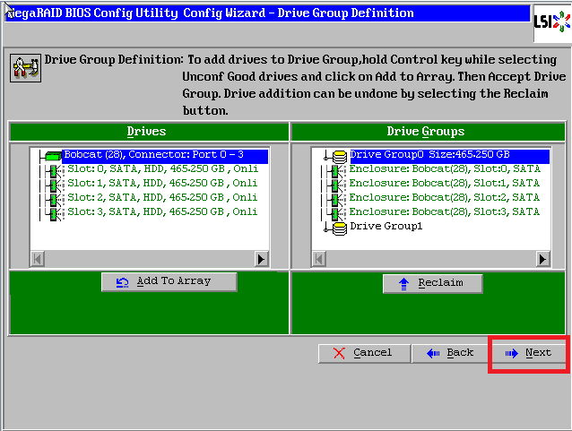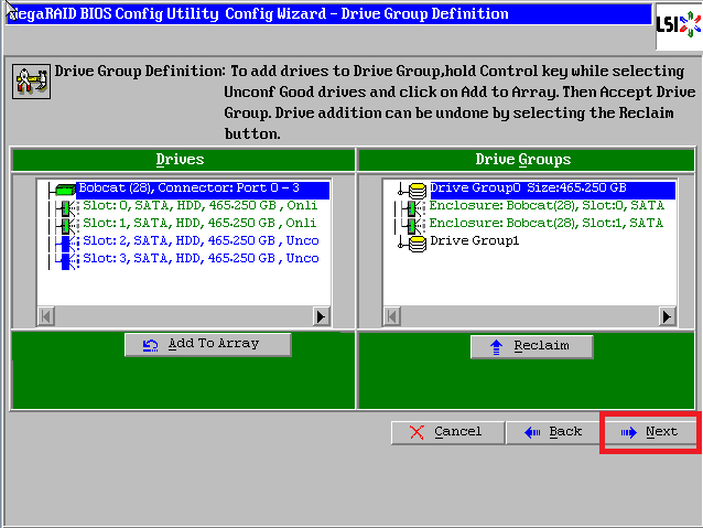 点击【Accept DG】,创建第二个磁盘组:Drive Group1