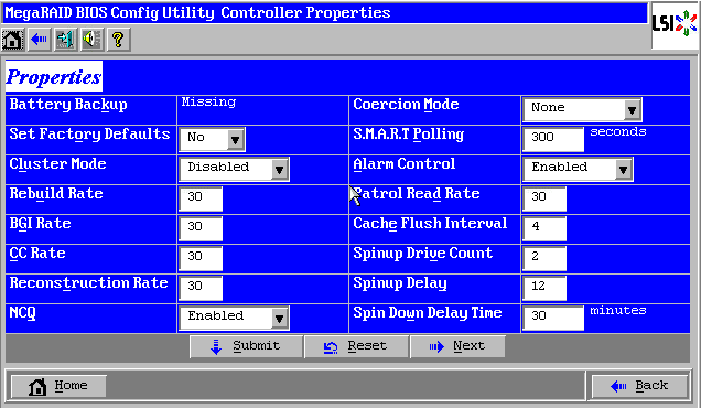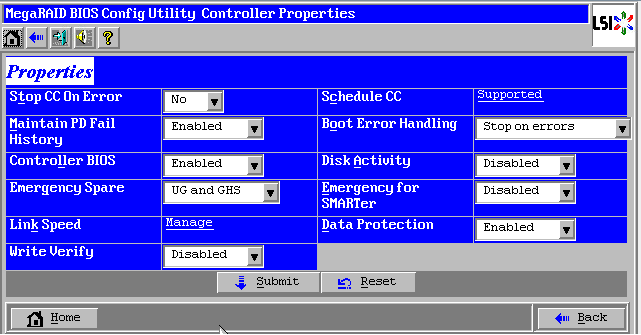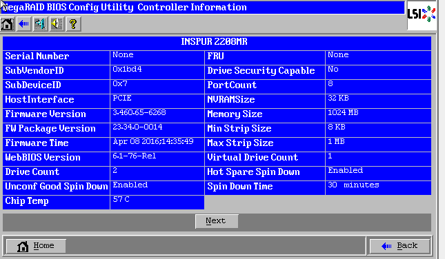 Alarm Control:可以配置raid卡的告警声音,Enable是正常告警,Disable是不告警,Silence是本次不告警