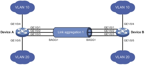 [DeviceA-Bridge-Aggregation1] port trunk permit vlan 10 20