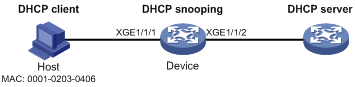 图1-3 配置与DHCP Snooping配合的IPv4动态绑定功能组网图