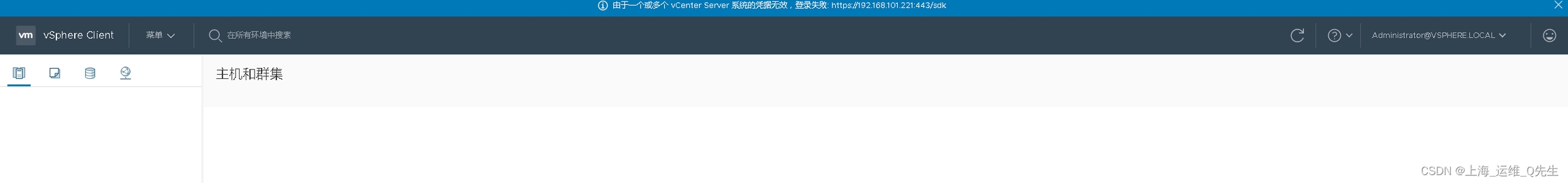 报错内容如下: 由于一个或多个 vCenter Server 系统的凭据无效,登录失败: https://192.168.101.221:443/sdk